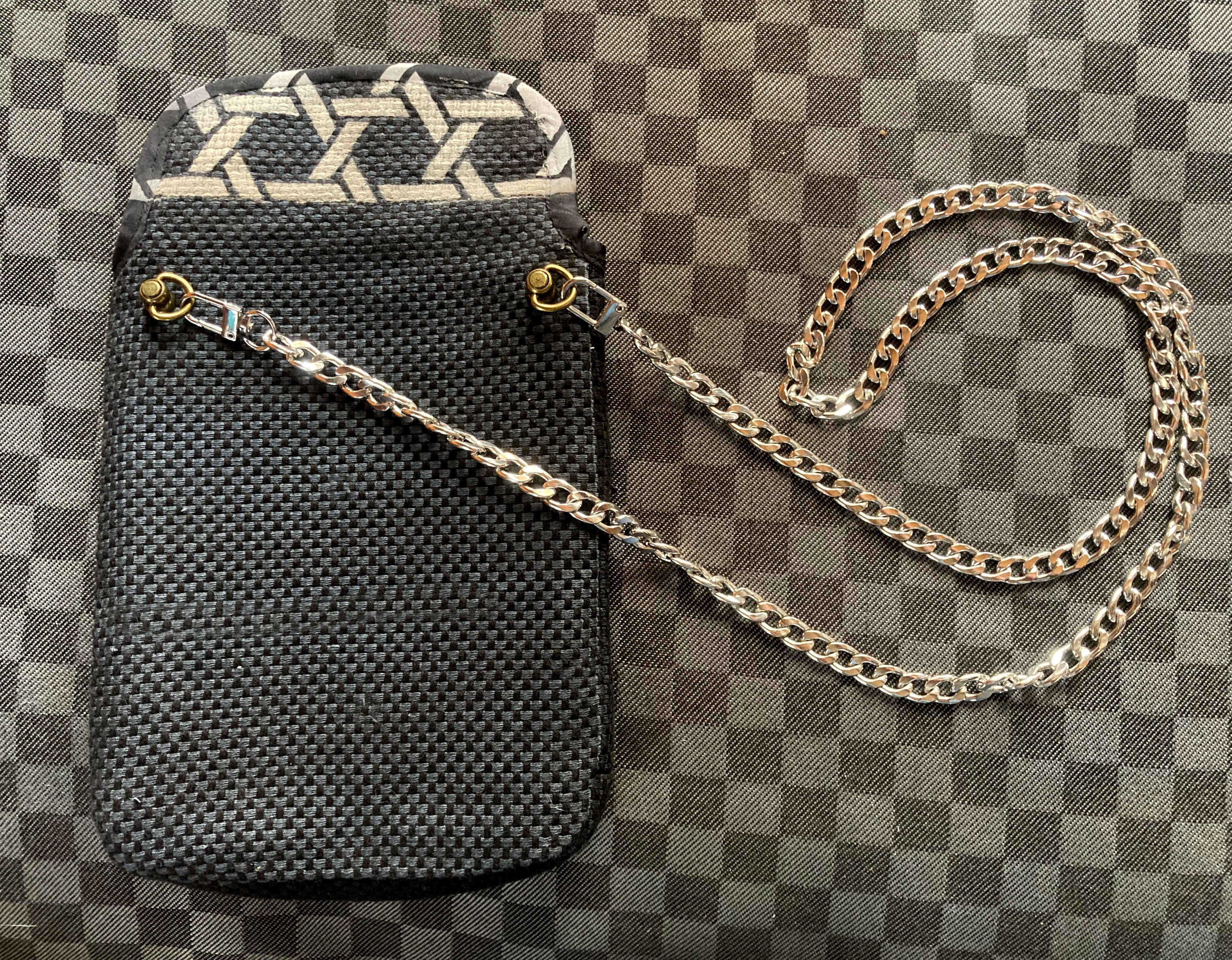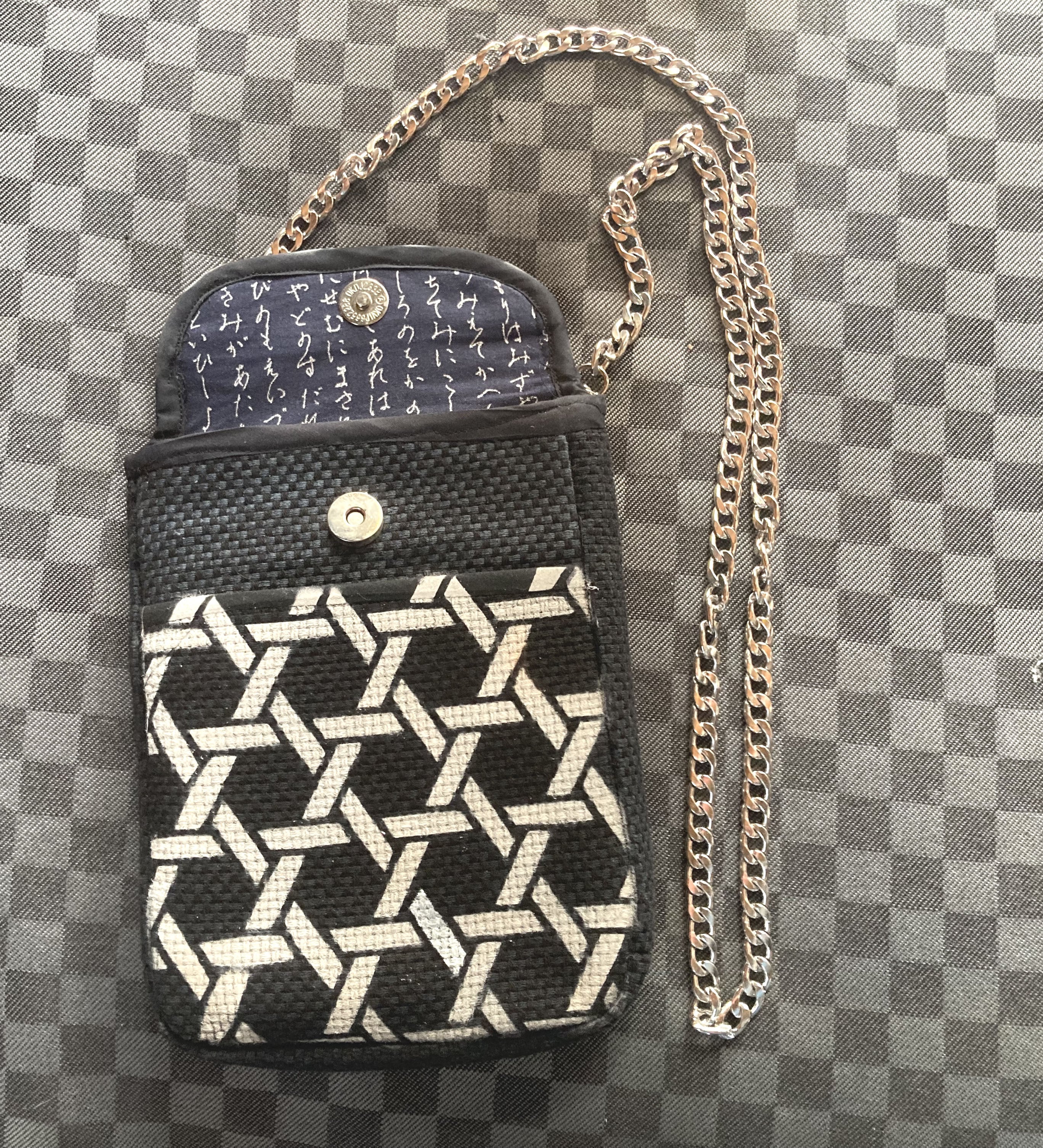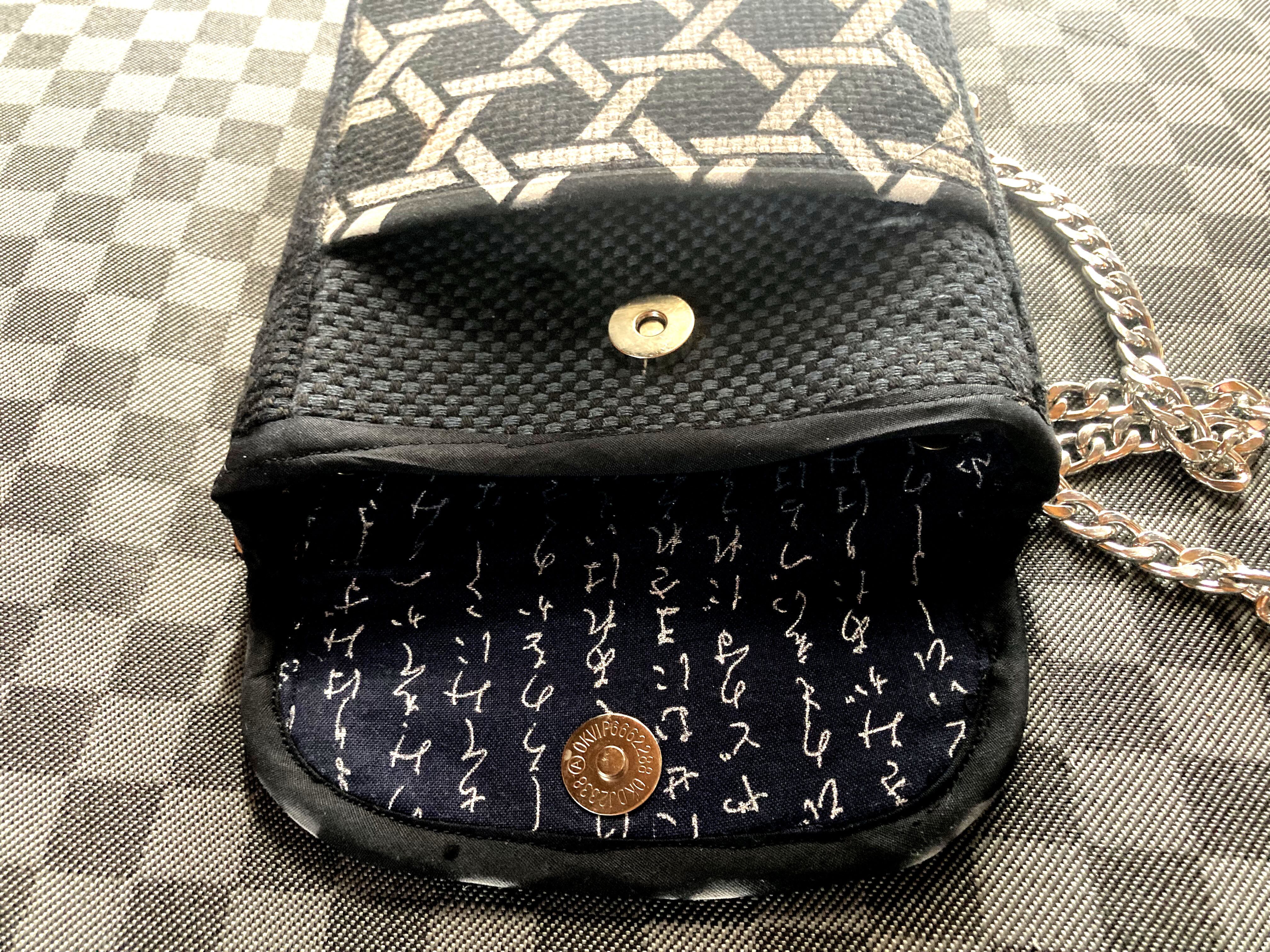 チェーン(写真のチェーンは付いておりません)をつけて千代掛け(ポシェット)としてお使いいただけます。